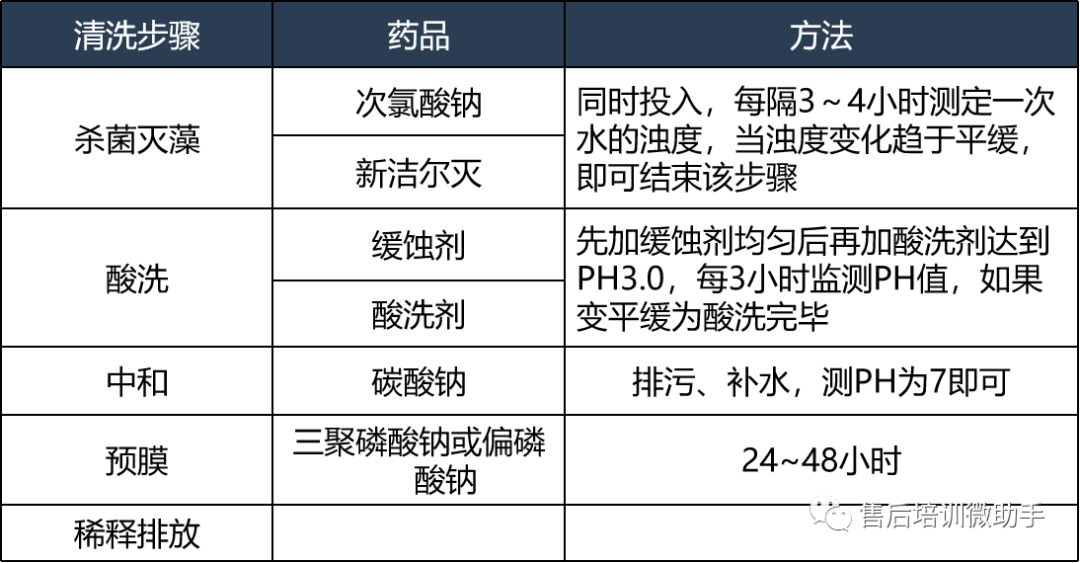 ②酸洗:通過弱酸與系統中的水垢進行化學反應,從而達到清除水垢的目的。